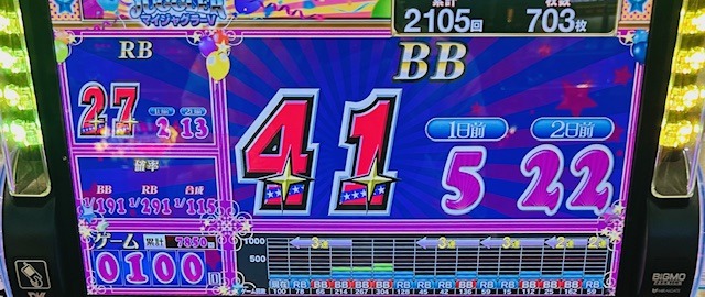 5775回転でビッグ31・レギュラー20・合算1/113のマイジャグを発見!